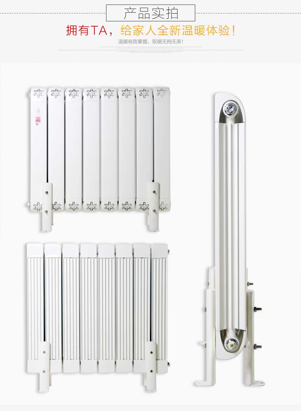 4、型號多樣、外形美觀:暖氣片叱咤市場的一大助力就是它外形美觀時尚,銅鋁復(fù)合暖氣片也不例外,市場上各種大小規(guī)格的型號都有,而且美觀時尚,可以為家居增色添輝。